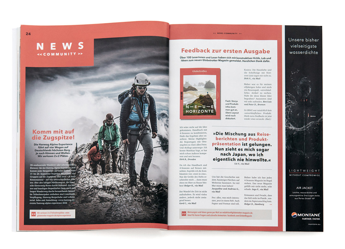 Konzeption, Art Direction, Gestaltung und Umsetzung des Globetrotter Magazins von Globetrotter.