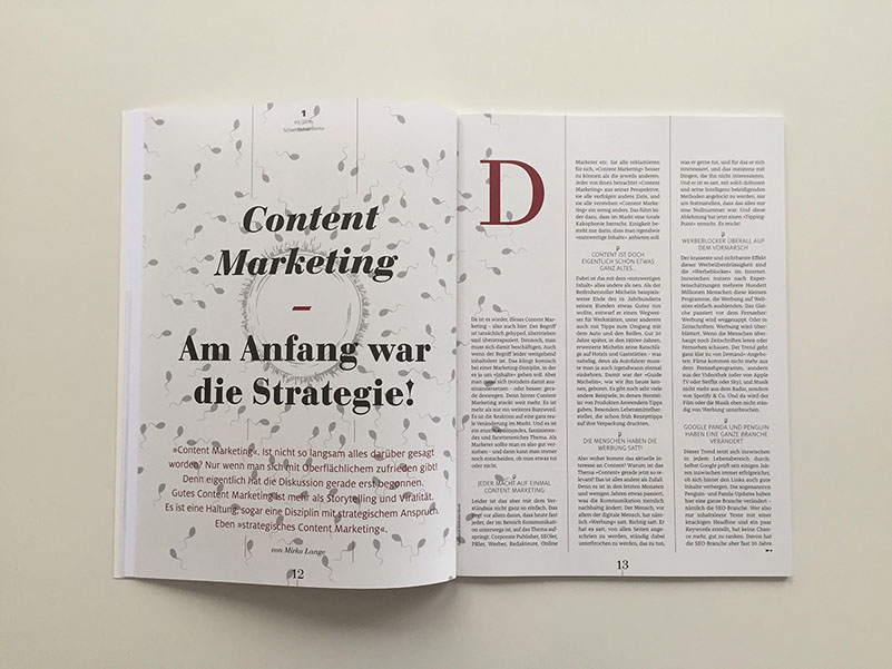 Konzeption, Art Direction, Gestaltung und Umsetzung des »1 Content Maketing für Alle« Magazins für Kammann Rossi.